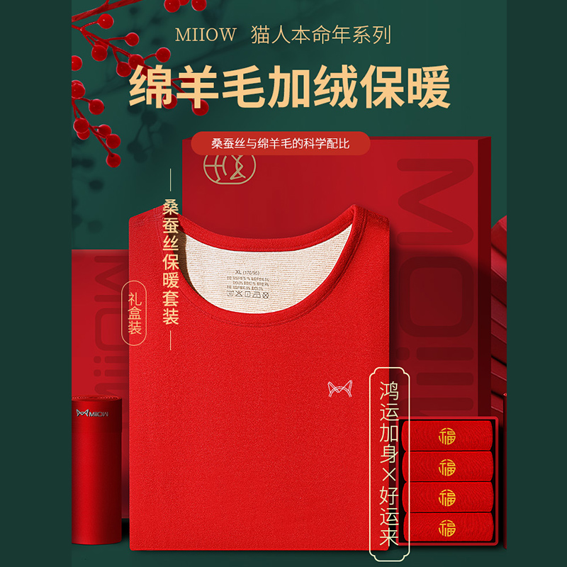Cat Man Warm Underwear Man's Life Year Great Red Autumn Clothes Pants Autumn Pants Suit Ladies Hon Transport Gift Box Wedding Gush-Taobao