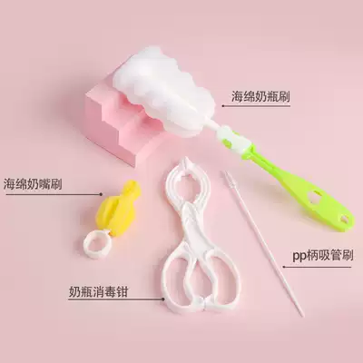 Milk bottle brush sponge cleaning brush baby bottle clip infant nipple brush silicone brush suction tube brush set
