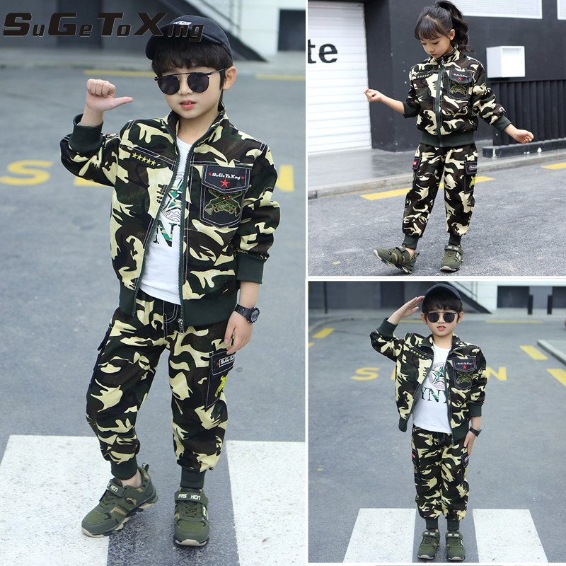 Children's camouflage uniforms, students' military training uniforms, kindergarten costumes, new spring and autumn two-piece suits for boys and girls, spring clothes