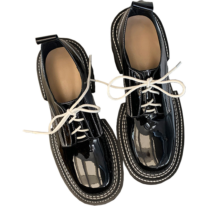 Head Layer Cow Leather Oh ~ 2022 Spring Summer New Pine Cake Thicken Bag Shoes College Inglées Lace-up Shoes Woman