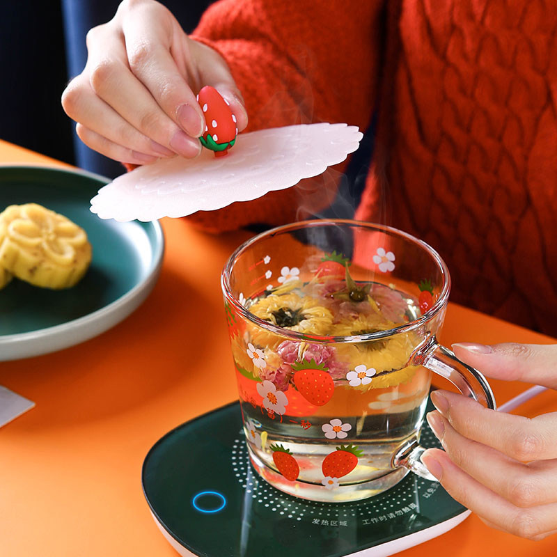 Small strawberry style single cup golden cherry flower spoon small strawberry with single cup golden strawberry spoon silicone cover heating cup cushion small daisy with single cup gold loving spoon small strawberry with single cup golden strawberry spoon