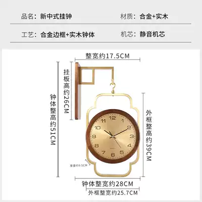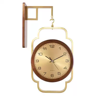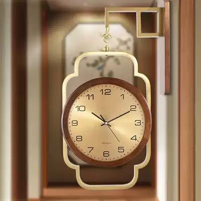 Chinese double-sided wall clock living room household wall clock walnut mute fashion two-sided wall watch atmospheric solid wood wall clock