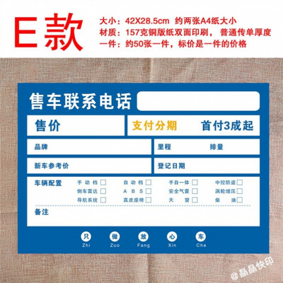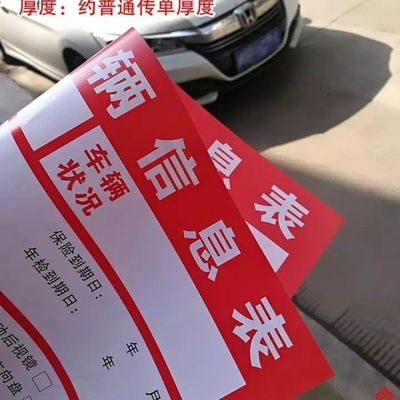 Sales paper display card car Bank paper car shop vehicle transfer agreement 4s shop car information form used car