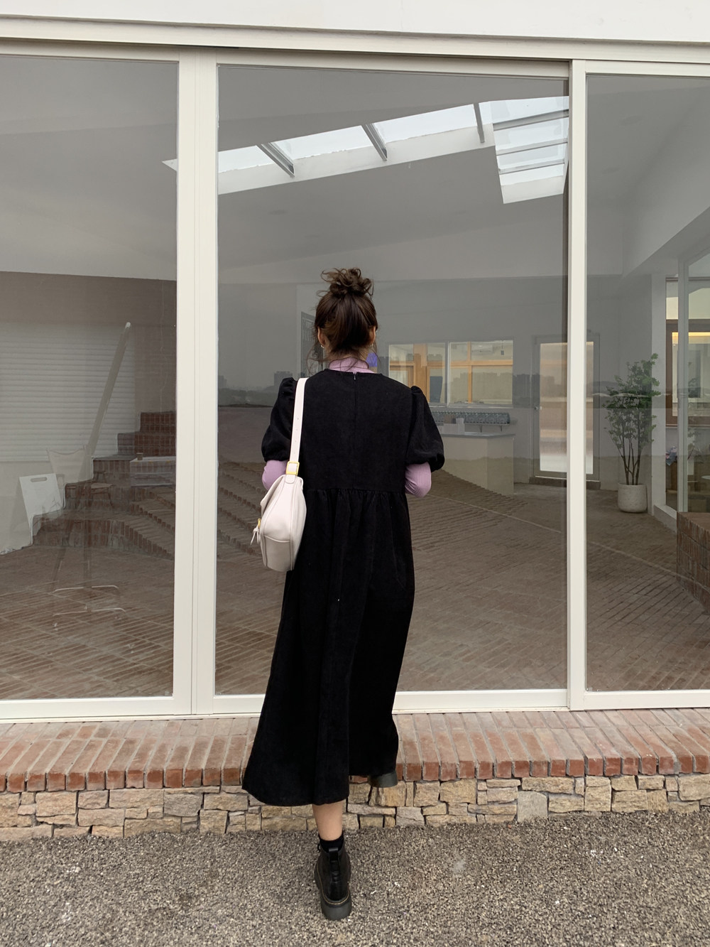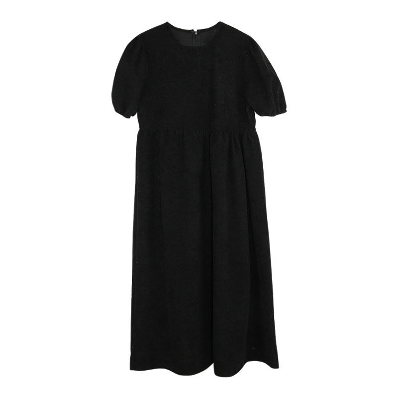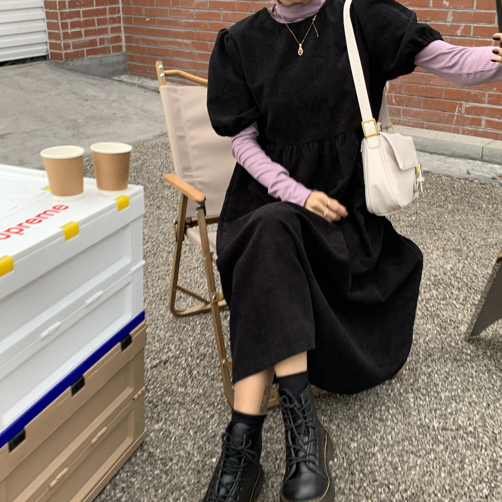 The smallest sea Korean version of the mid-length version of the corduroy dress women's early spring new style with short-sleeved pit strip long skirt