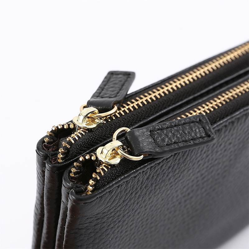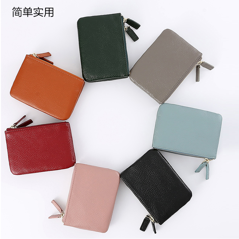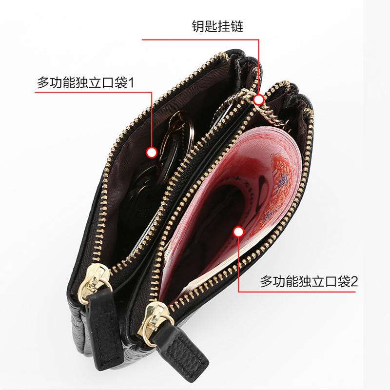 First layer cowhide men's and women's double zipper bag, mini coin purse, leather short handbag, key bag, card bag, silver coin bag