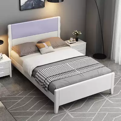 Solid Wood single bed 1 2 m bed 1 m small bed adult 1 35 beige bed household small apartment apartment bed