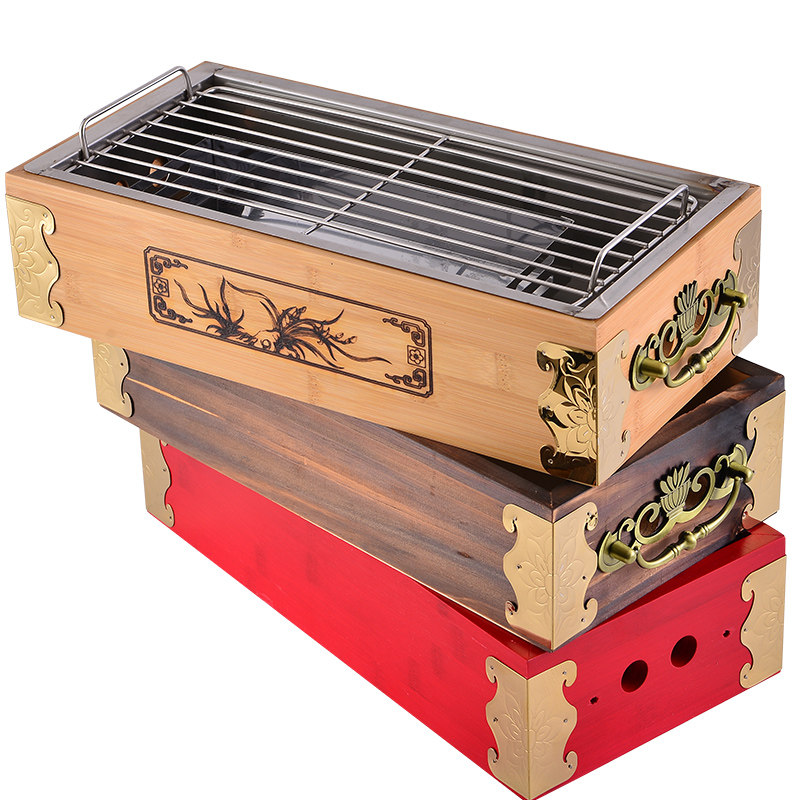 Barbecue grill hole type wooden box Bamboo box heating furnace Commercial hot string furnace Insulation barbecue grill Heating string artifact string oven