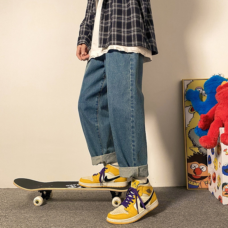 Fatfat Gothic loose straight drum jeans Men's summer new trend Large size size Fat pants Pants Tide 90% Pants