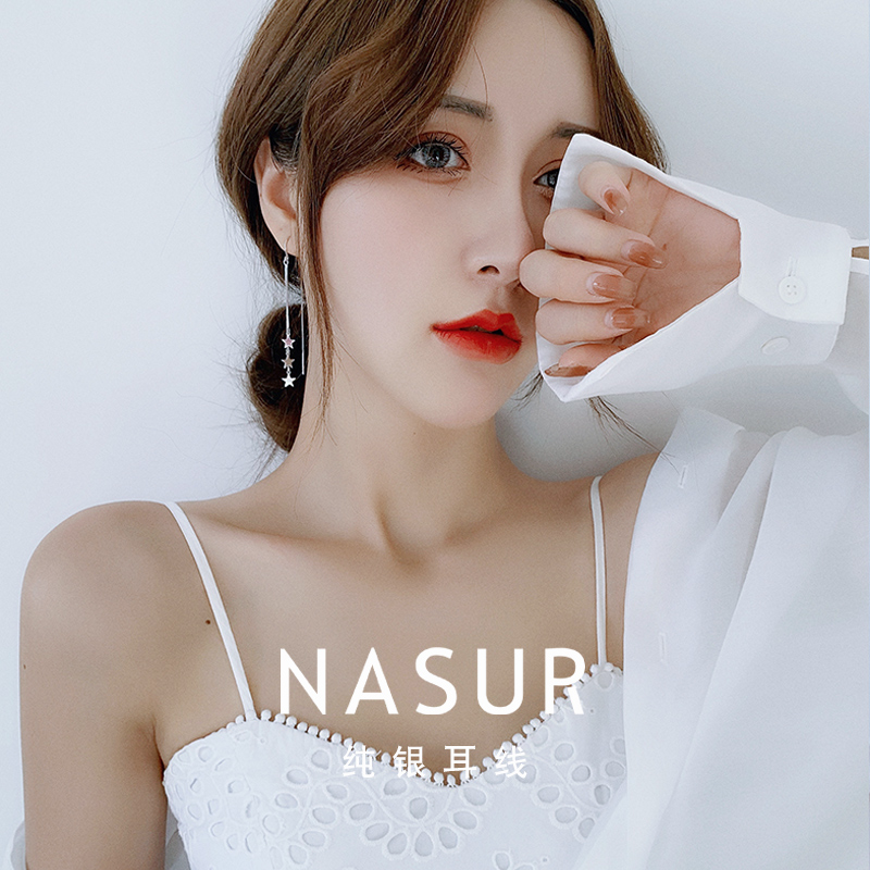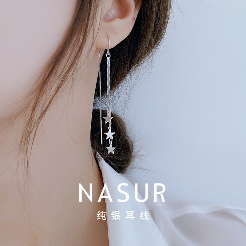 Sterling silver tassel ear line] a pair of five-pointed stars