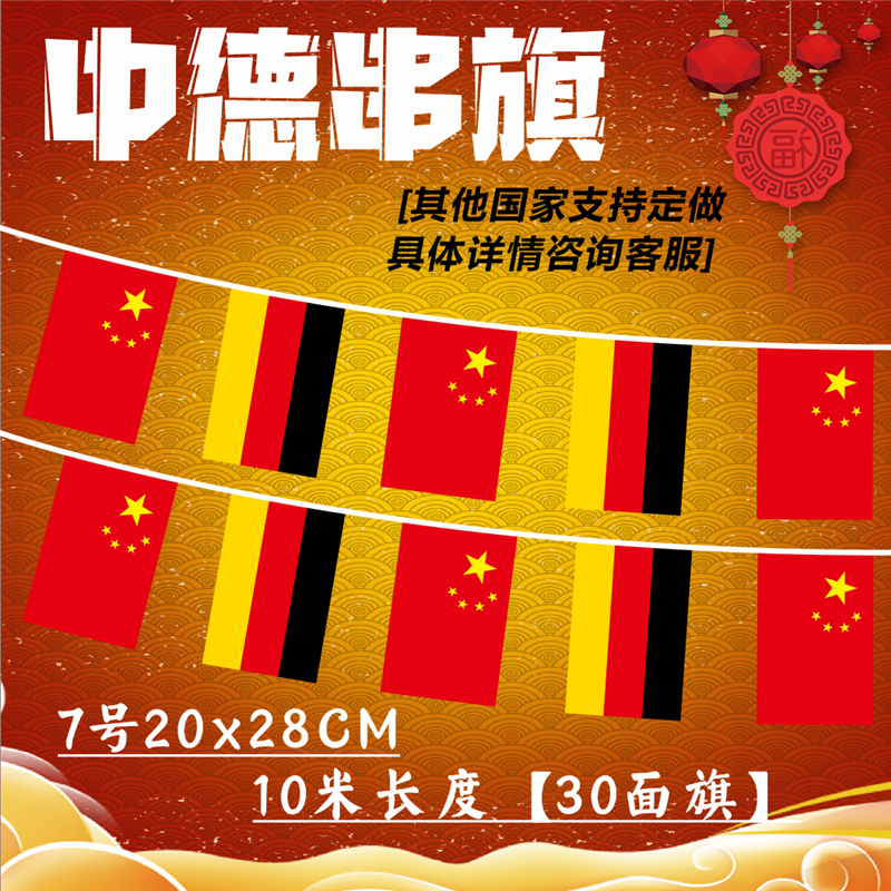(Support custom-made) No. 7 and No. 8 China and Germany String Flag Hand Waving Flag Face Sticker Sino-German Hanging Flag School Culture Festival Classroom Decoration Flag Oktoberfest Bavarian Bunting Flags Small National Flags Hanging Flags