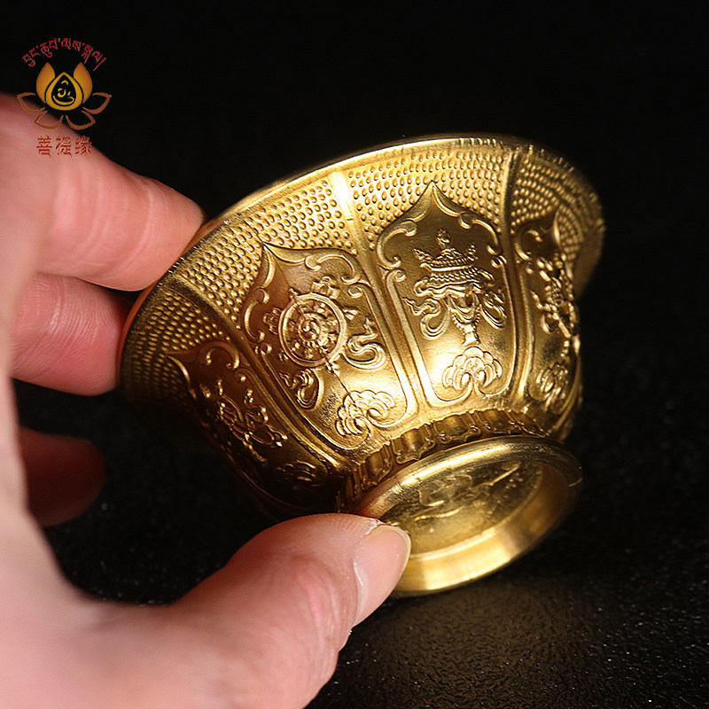 Water supply cup for Buddha cup copper carving short feet eight auspicious seven water supply bowl with foot eight for holy water cup diameter 7cm7