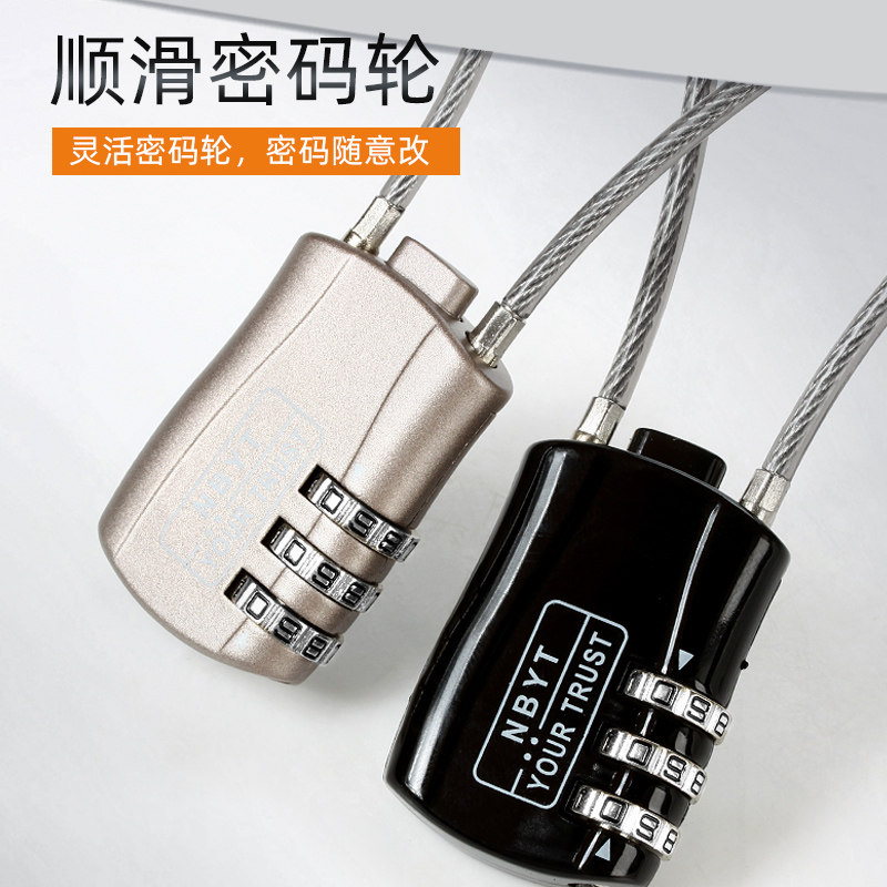 NBYT portable suitcase package fitness cabinet safety cap lock anti-theft lock long soft mini wire rope password padlock