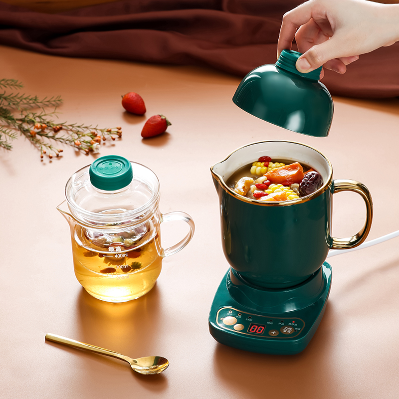 Retro green multifunction health preserving pot cup electric saucepan automatic mini small cooking water ceramic office Traditional Chinese medicine