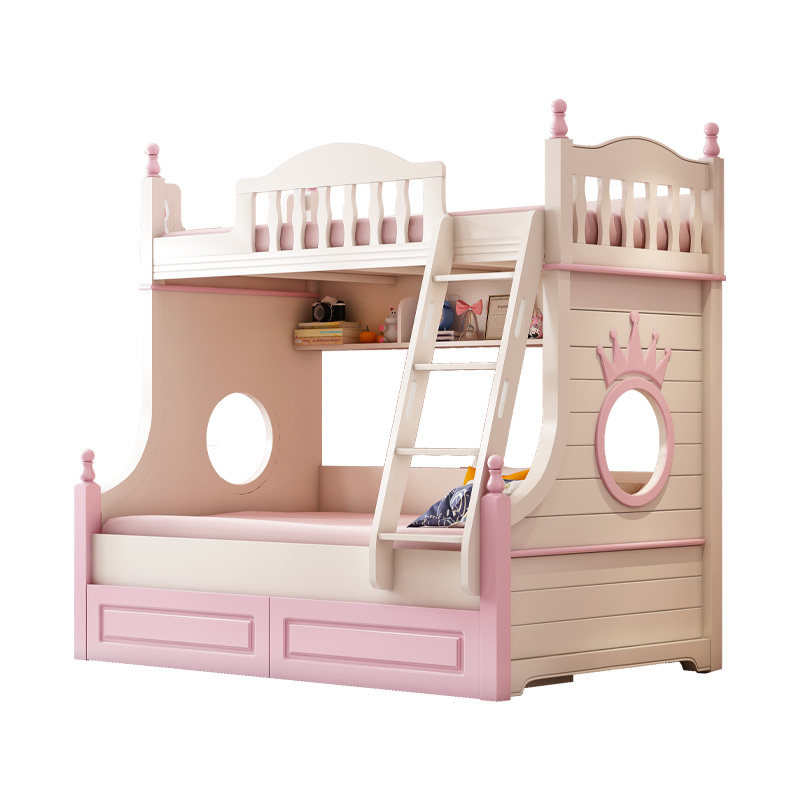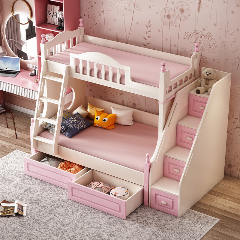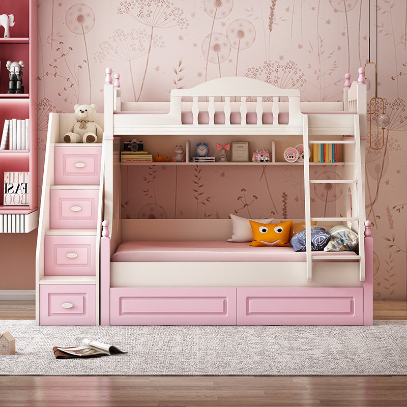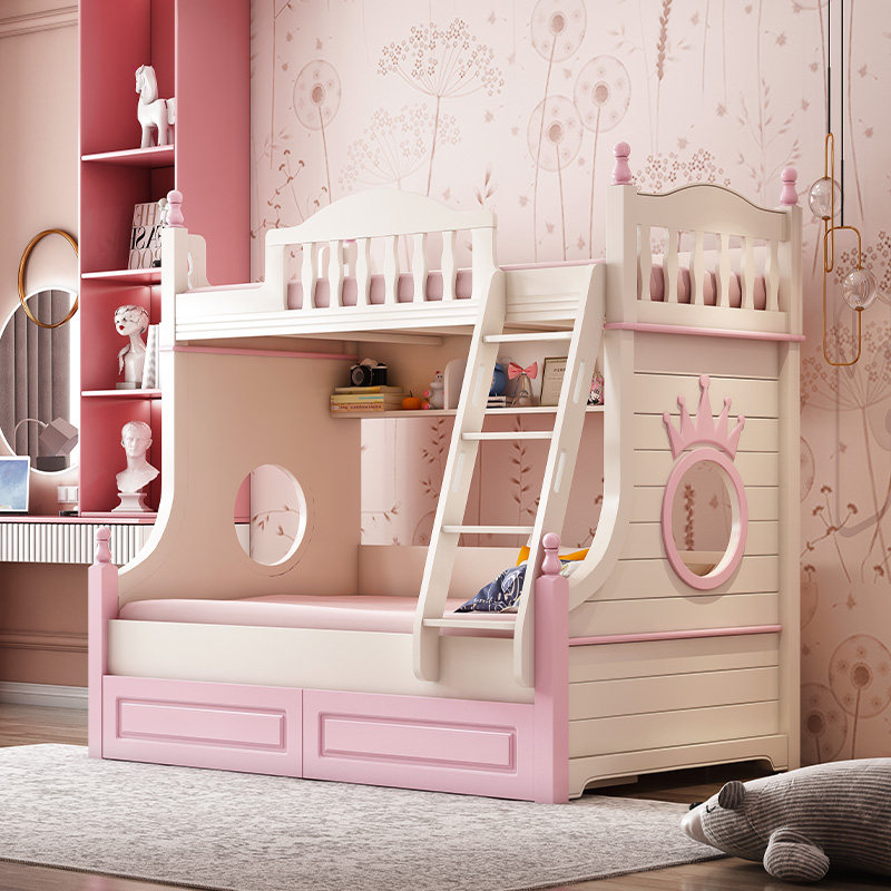 Yiyi children's solid wood child mother two-layer double-layer high-low bunk wooden bed staggered small apartment girl princess bed