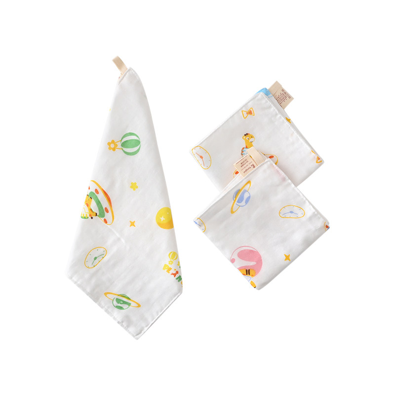Tong Tai Four Seasons Infant Boy Boy Baby Supplies Accessories Saliva Towel Face Towel Four Layer Dark Grid Square Towel Three Pieces