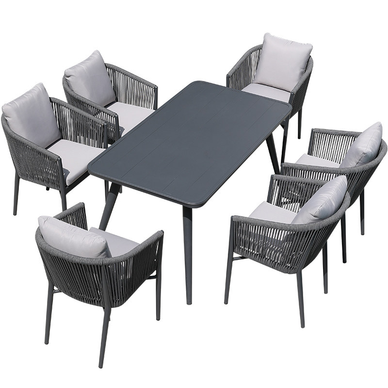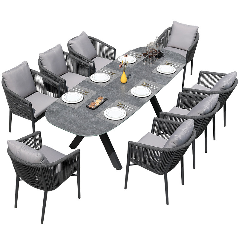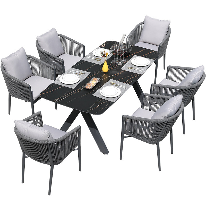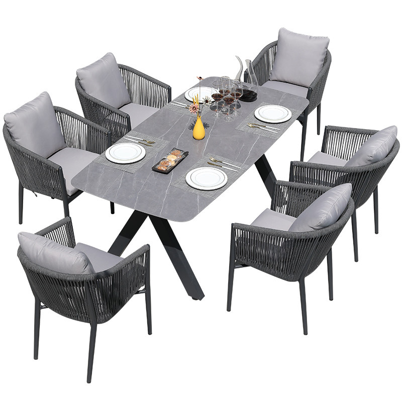 Villa Outdoor Table And Chairs Patio Open-air Balcony Garden Furniture Outdoor Leisure Rattan Chairs Folk Hotel Rock Plate Dining Table