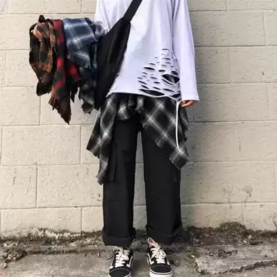 Hip-Hop Hip-Hop Jazz culottes female 2021 early spring new lattice strap old waist decoration skirt