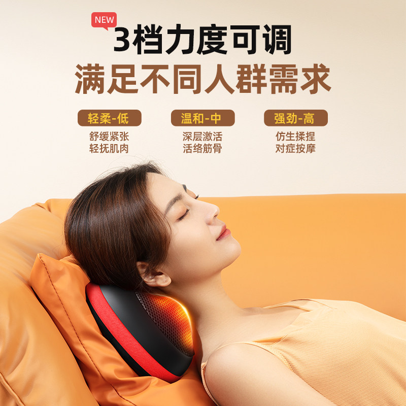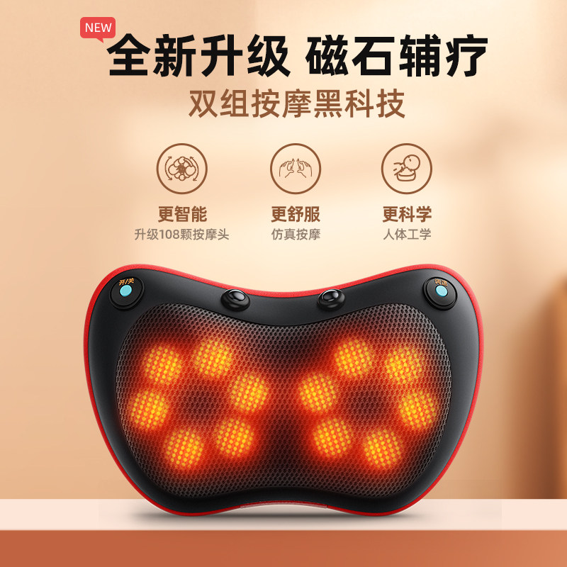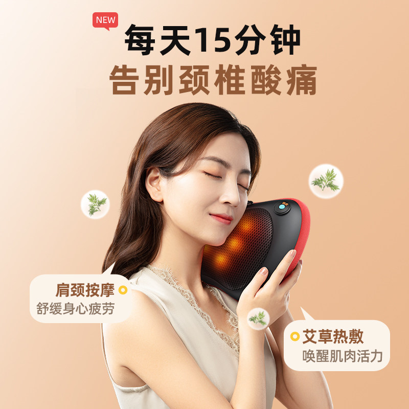 Flagship upgrade black 4D simulation massage fit cervical spine hot compress Car-mounted home dual-use exclusive upgrade Red 6D simulation kneading double-key control deep massage warm hot compress(only 69)
