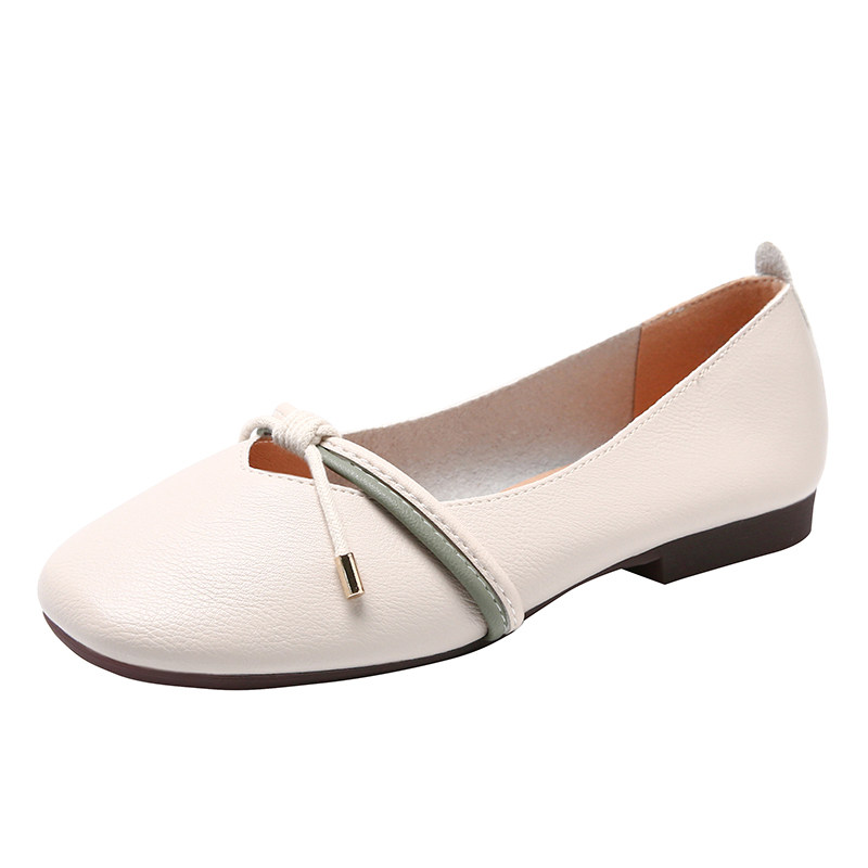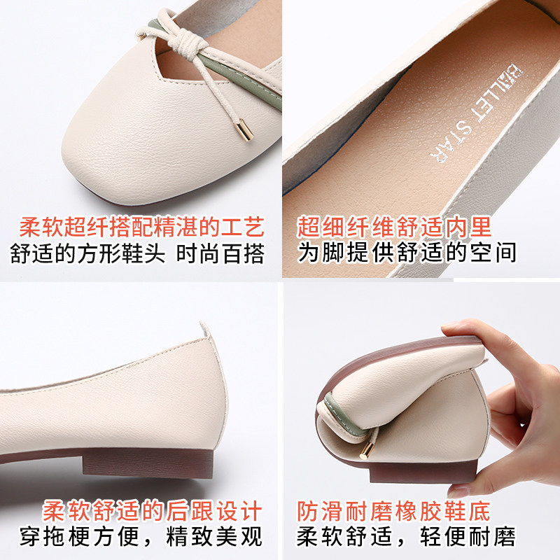 2022 Spring Festival single shoes female low heel small fragrant wind flat heel Shallow Mouth bean Bean Shoes Bull Gluten Bottom Soft Bottom Comfortable Flat Bottom Shoes
