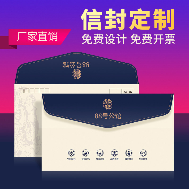 Envelope custom printing logo custom printing design Chinese and Western style letter paper invoice value-added tax envelope bronzing kraft paper