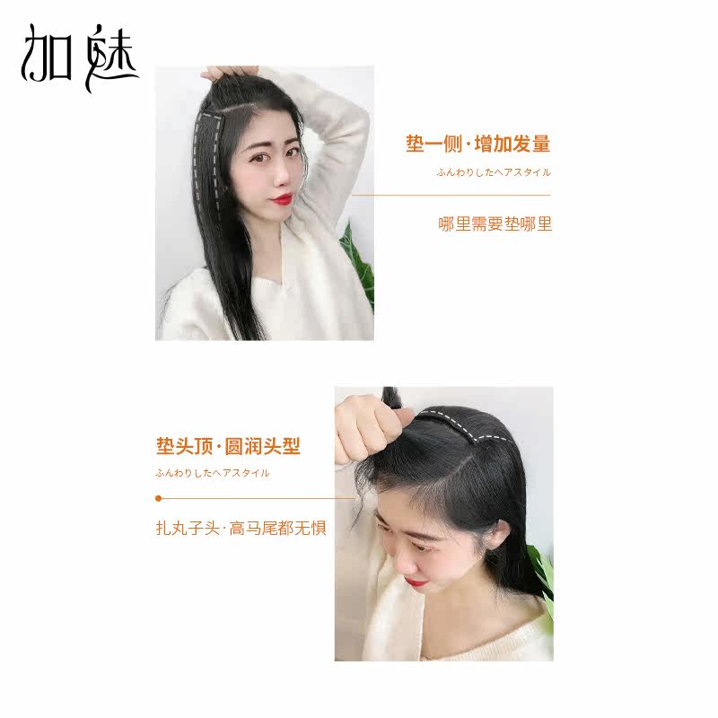 Full real hair wig piece female pad hair root hair piece thickening on both sides of the head fluffy machine no trace invisible white hair patch