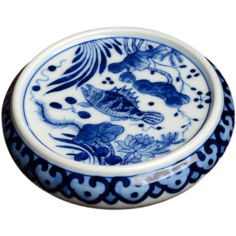 Jingdezhen Hand-painted Green Flower Fish Algae Grain cover Purple Sand Pot guay Gongfu Chutian Tea Trail accessories