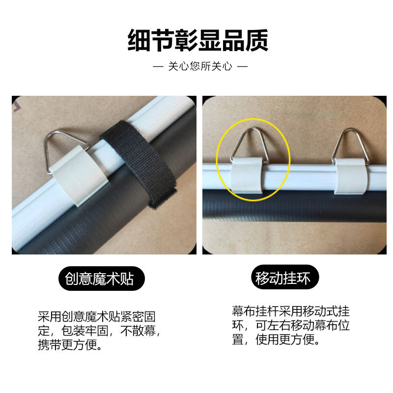 Simple hook curtain layout without punching installation 150 inch projector HD light resistant projector portable moving curtain