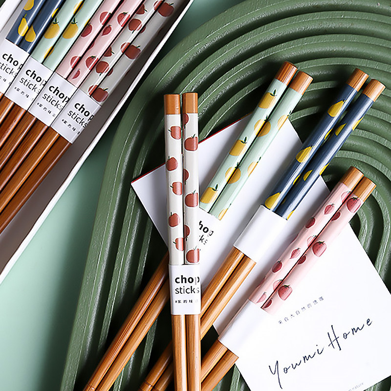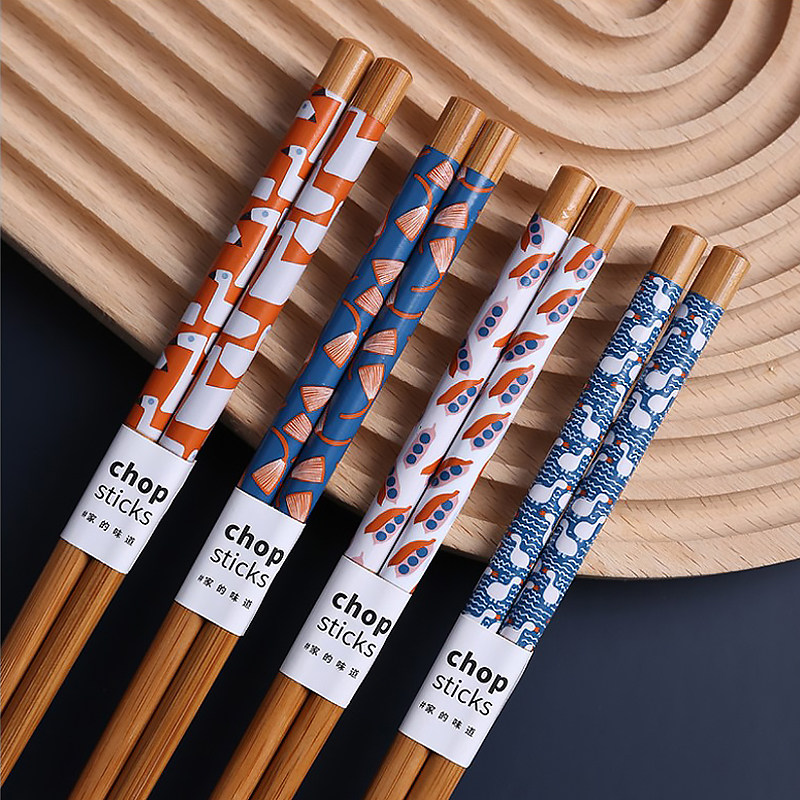 Day style and wind illustrator chopsticks 8 Double gift boxes Fitted Natural Bamboo Pointed Colored Anti-Slip and Creative Home