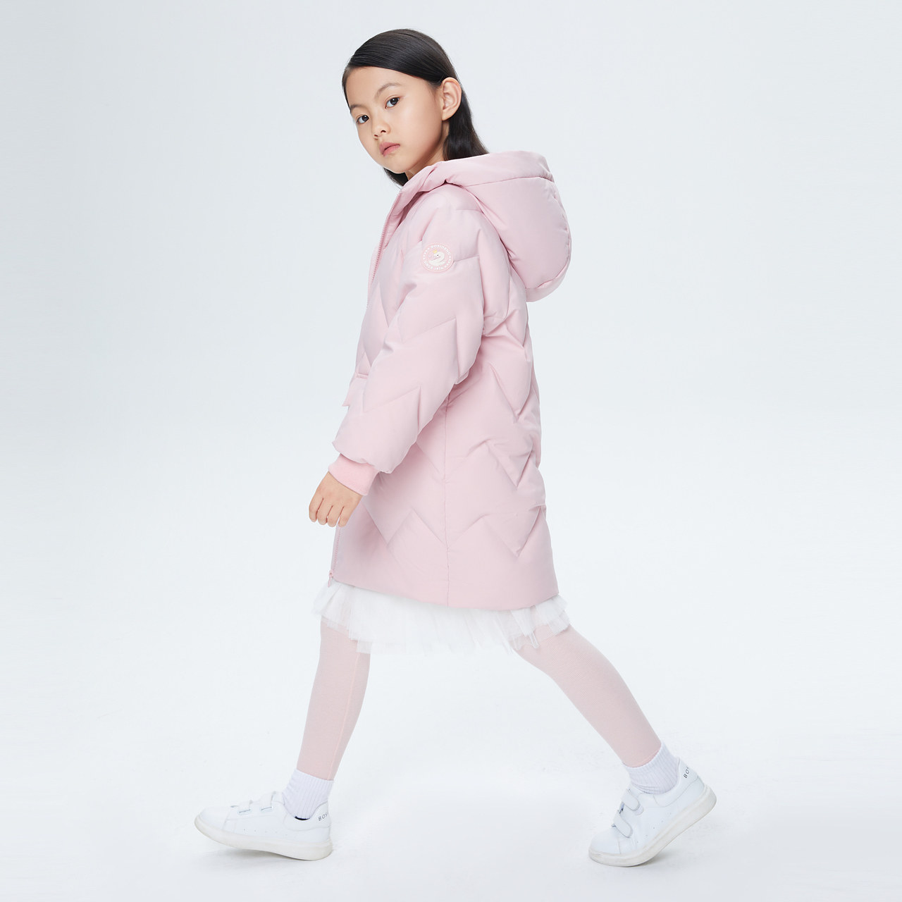 Boselden girl's duvet jacket for long version 2020 new pint of sweet and medium long version tech peace of mind suede macaron coat