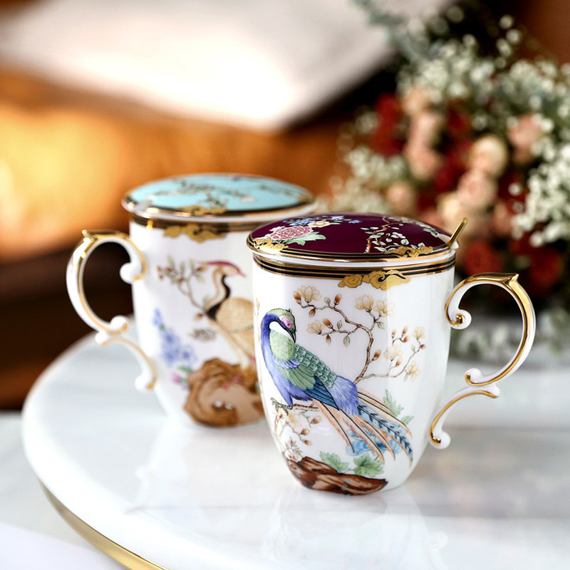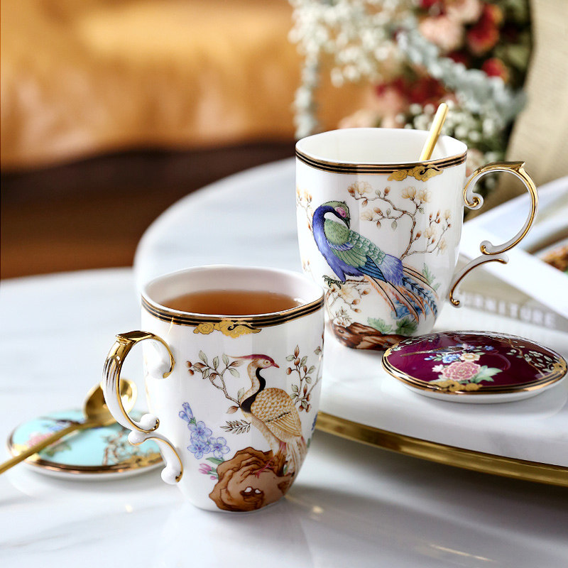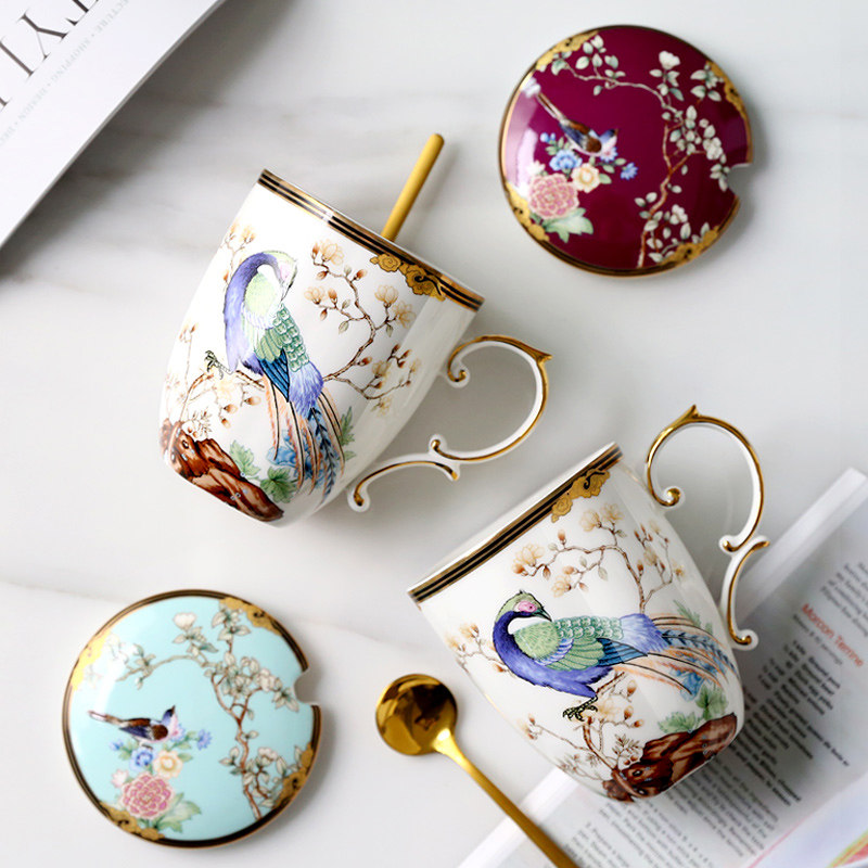 Hundred Birds Chaofeng Ceramic Mug with Lid Spoon Creative Personality Trend Cup Women's Water Cup Men's Chinese Style