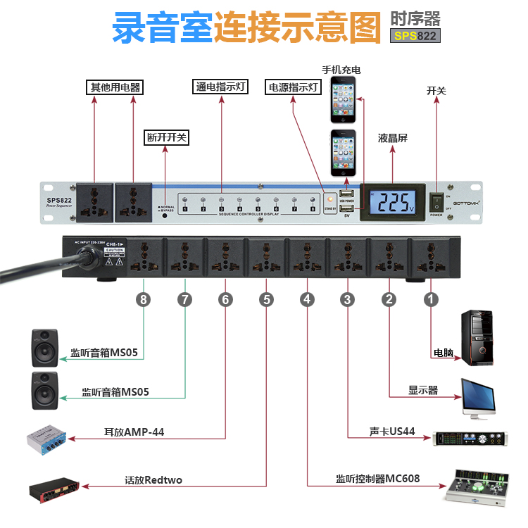 Gottomix SPS822 10 power sequencer protector filter universal socket recording studio stage