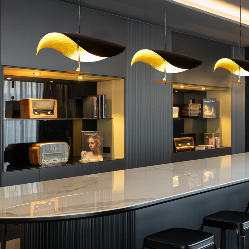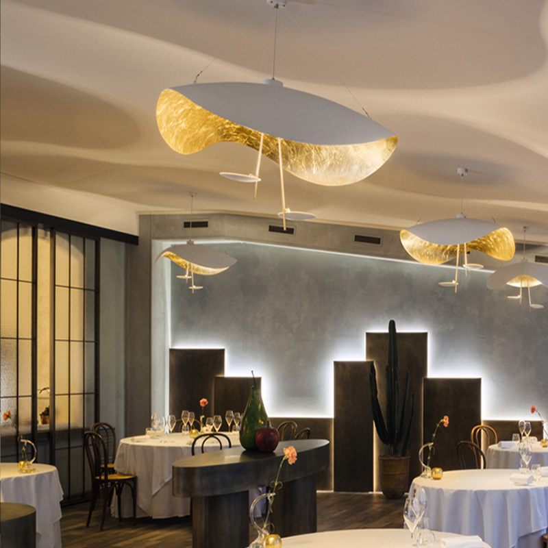 Italian designer creative modern minimalist chandelier dining room Nordic study living room flying saucer retro gold foil chandelier