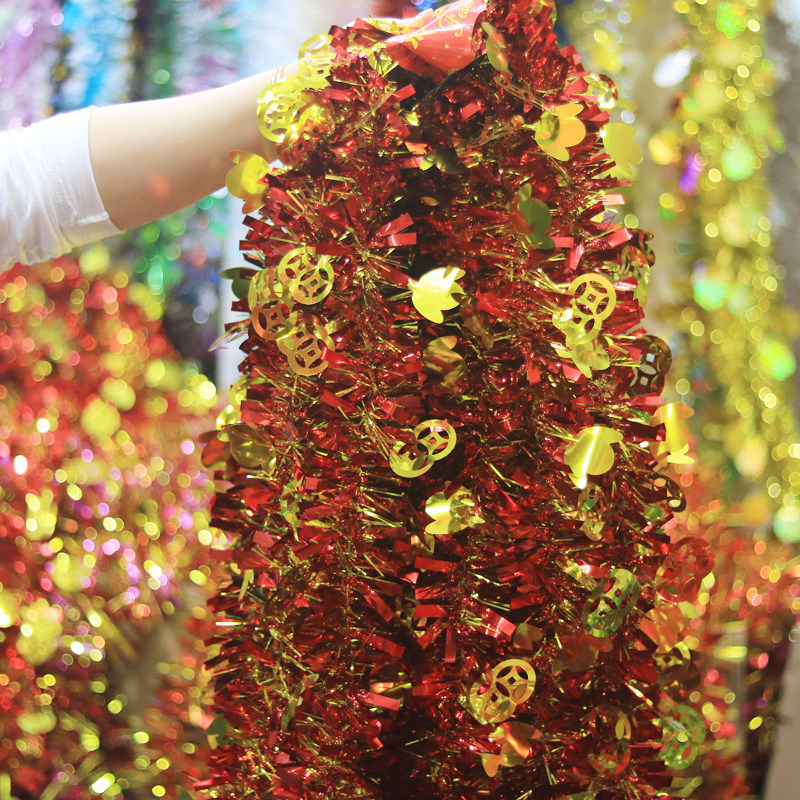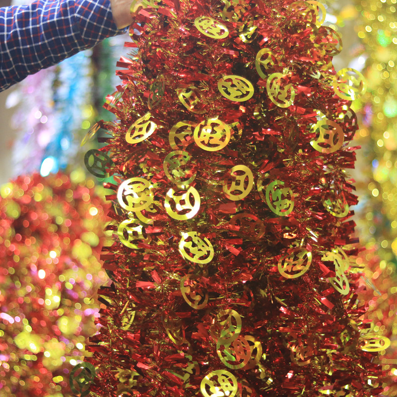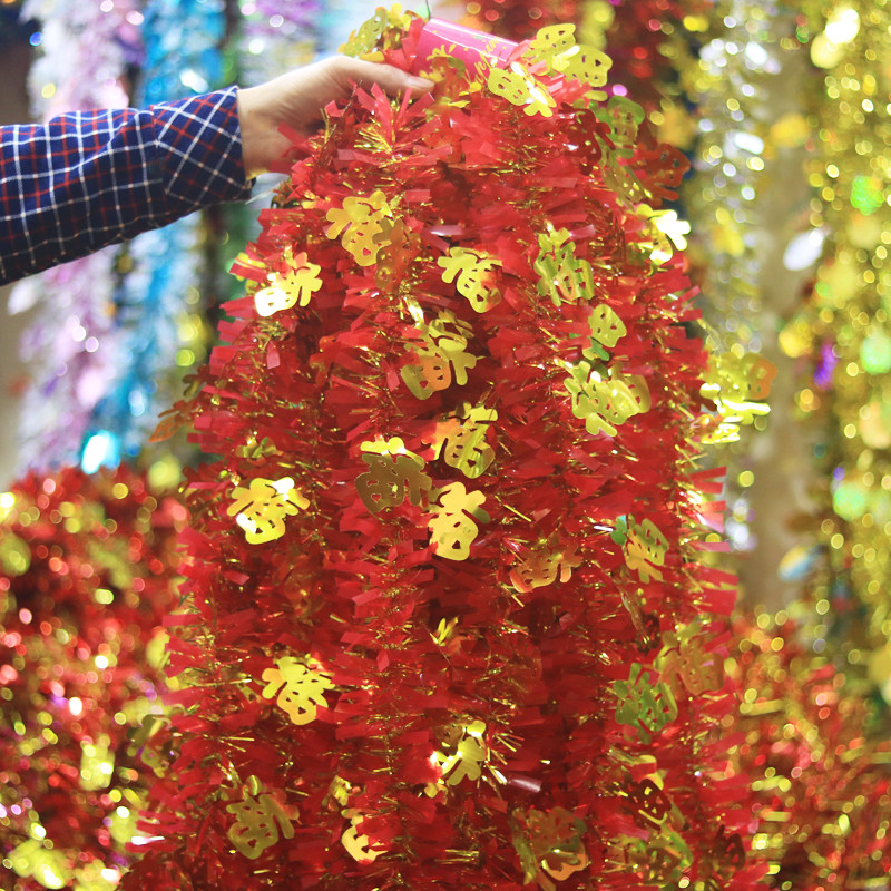 New Year decoration supplies color strips and fur strips pull flowers Spring Festival celebration New Year red Lucky word Daji ribbon decoration hanging