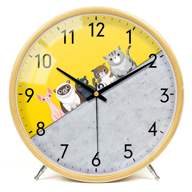 Children students learn cartoon hand-drawn watch clocks solid wooden table pendulum clocks Home living room bedroom muted wall clocks