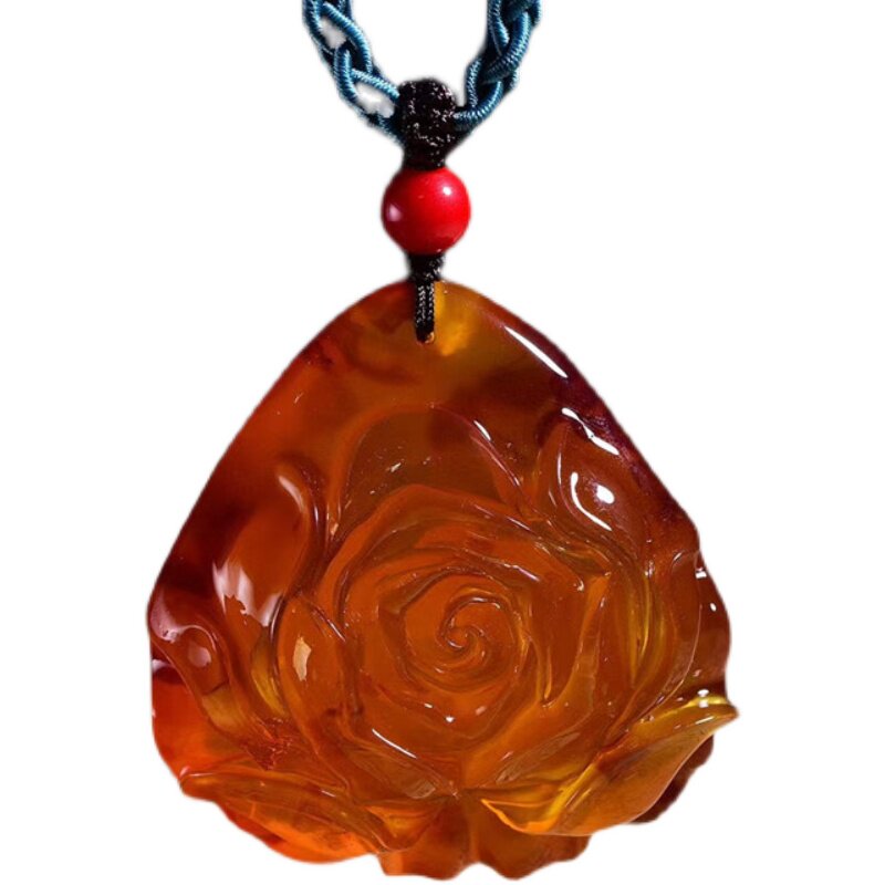 Honey Wax Pendant Peony rose Amber Chicken Oil Yellow Virgin Stone Yellow Honey Blood Per woman Fur Coat Chain Natural