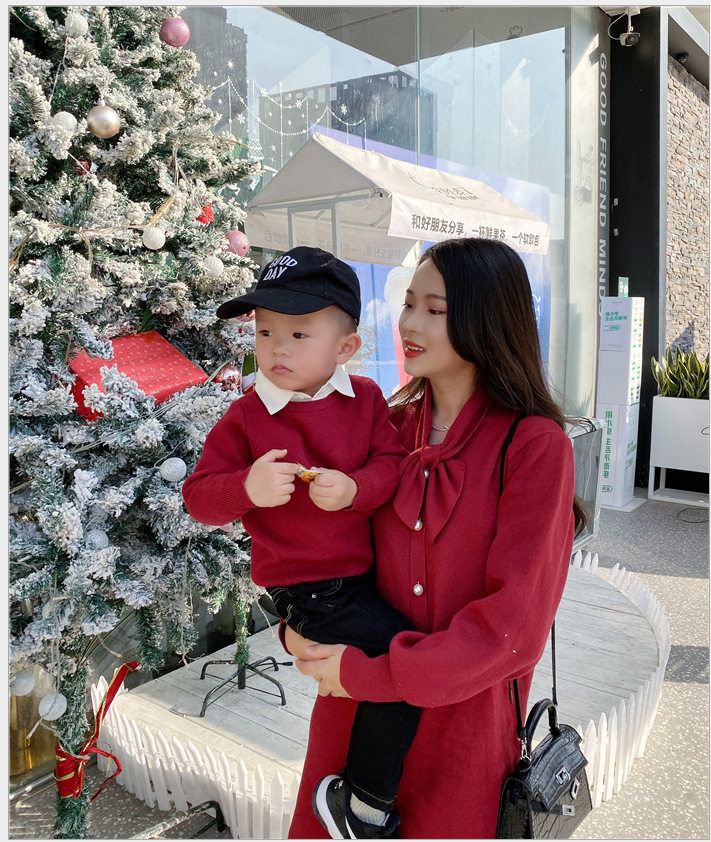 Family and daughter dress Yang Family Family 2020 New Year's Fu red sweater