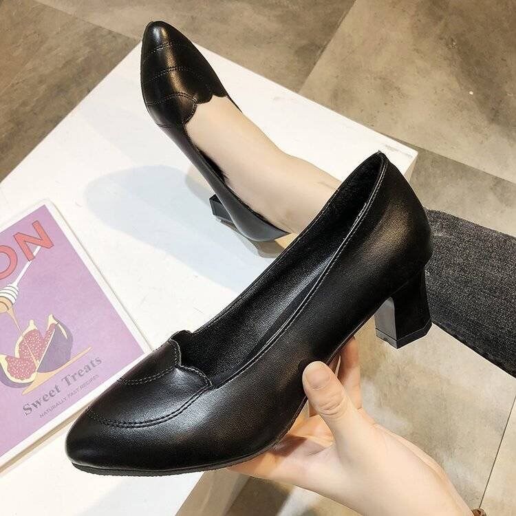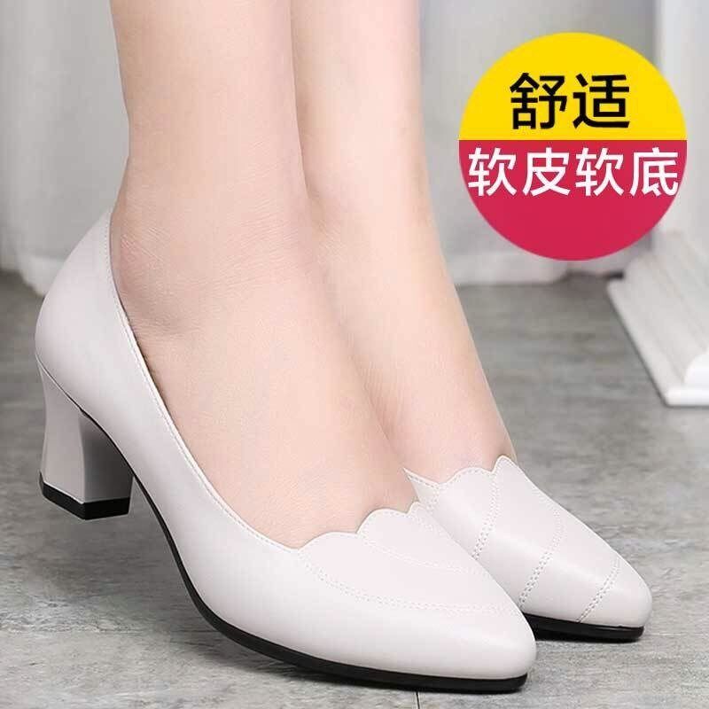 Women's leather shoes middle-aged mother small high-heeled middle-aged and elderly two-wear casual shoes four seasons shoes square mouth shallow mouth woman