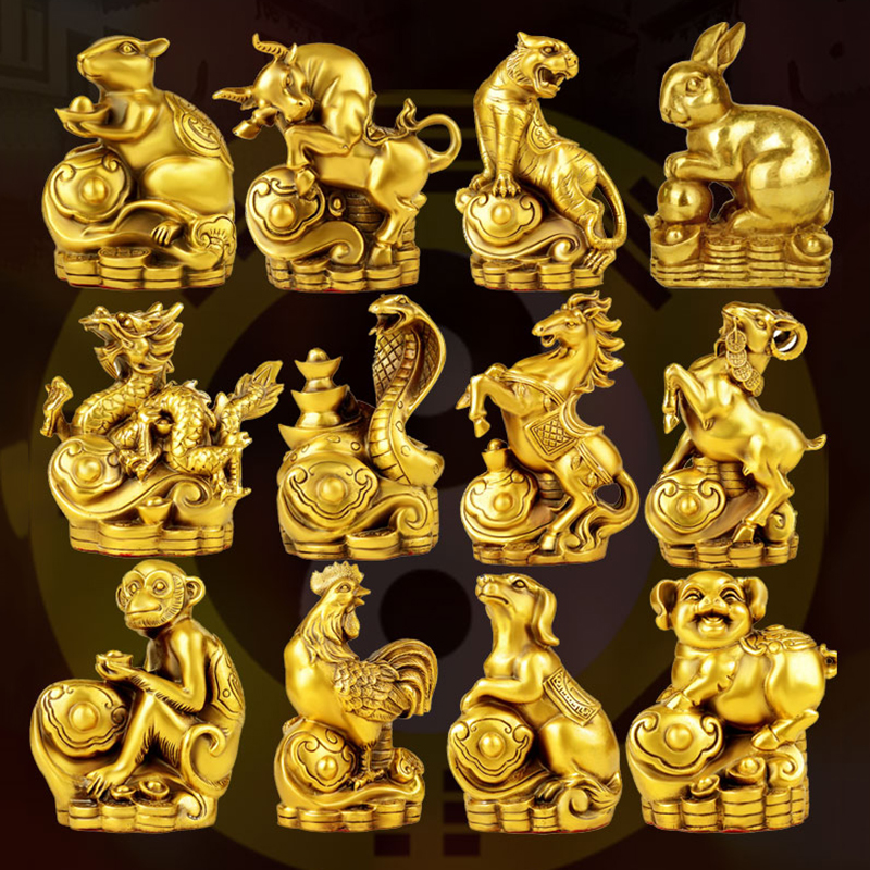 Rat style, one cow style, one tiger style, one rabbit style, one dragon style, one snake style, one horse style, one sheep style, one monkey style, one chicken style, one dog style, one pig style, one rat style, two cow styles, two tiger styles, two