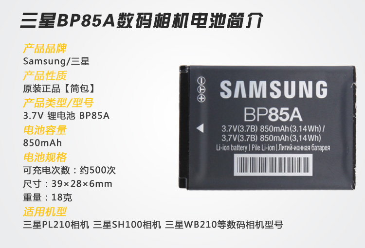 Samsung digital camera PL210 SH100 SH100 ST200F ST200F mobile phone battery ST201 original lithium battery BP85A