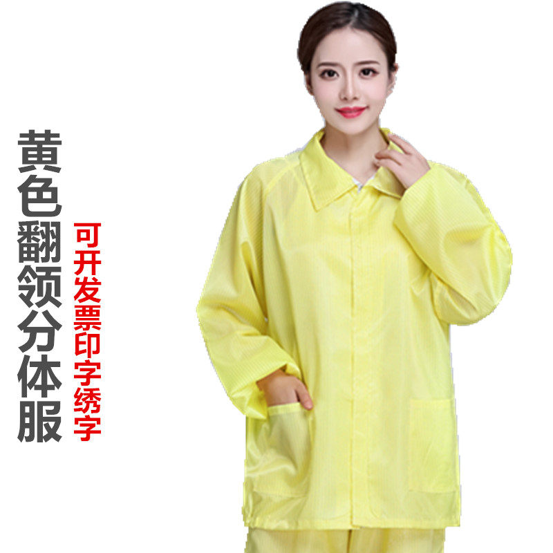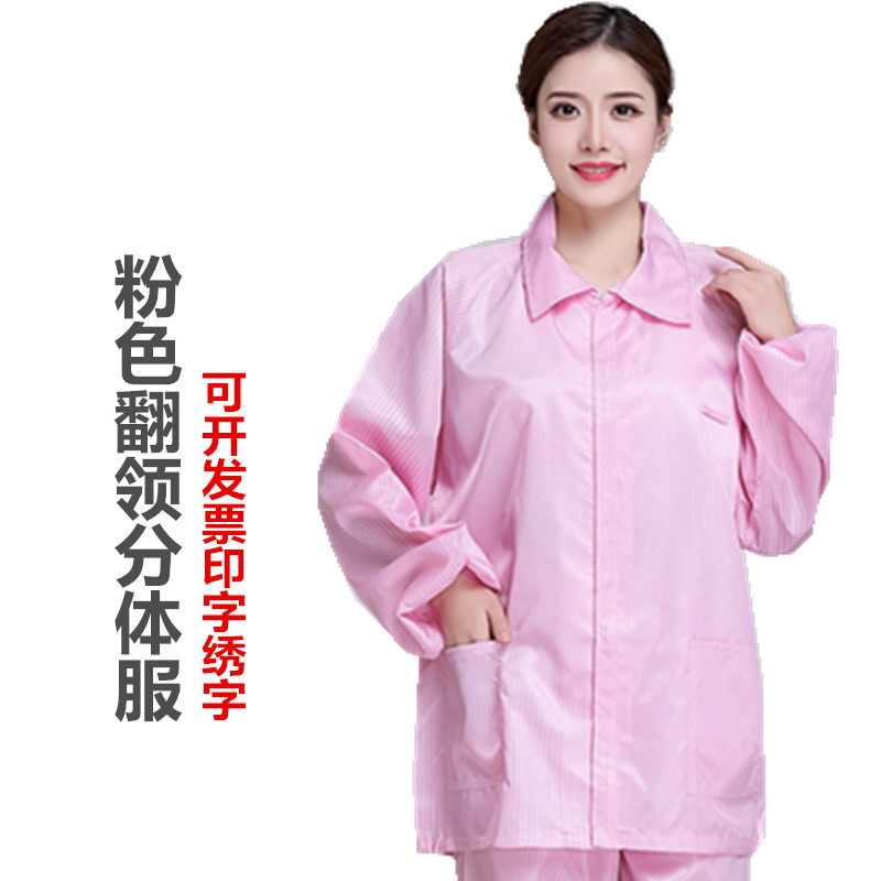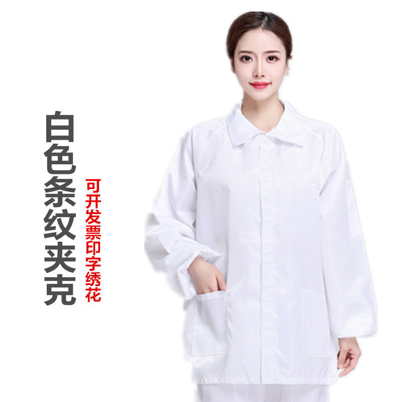 Stripe antistatic flip collar button TWO-PIECE CLOTHING DUST-FREE JACKET JACKET DUST RESISTANT WORK SUIT PROTECTIVE CLOTHING PRINT