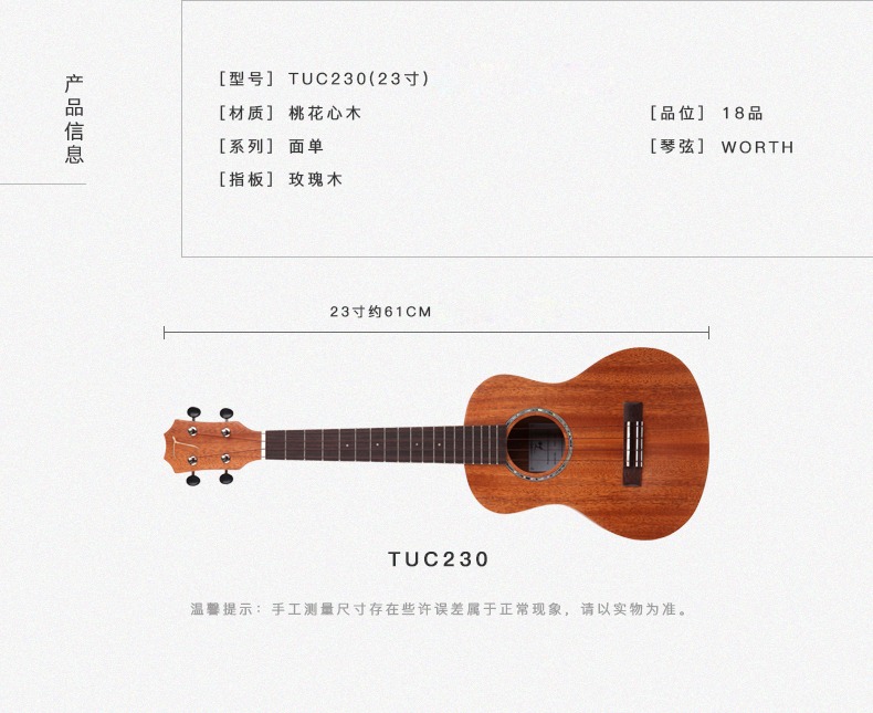 TOM TUC230 VENEER JUKRI Professional small guitar 23 inch Ukrone Blossom Heart Wood Introductory Beginner