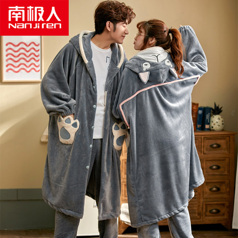 South Pole lovers pyjamas pyjamas autumn winter coral suede male lady thickened with velvety external wear flannel home suit suit