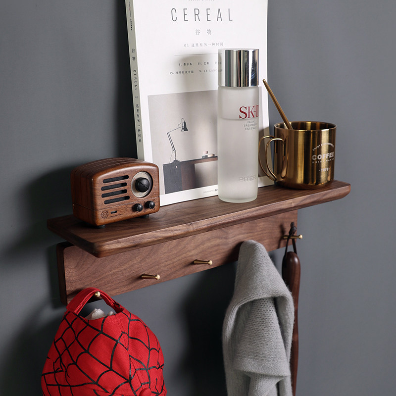 Original entrance hall black walnut solid wood brass hanging hanger wall wall wall hanging coat rack bedroom simple hanger