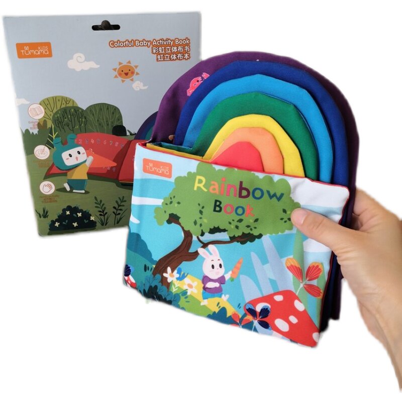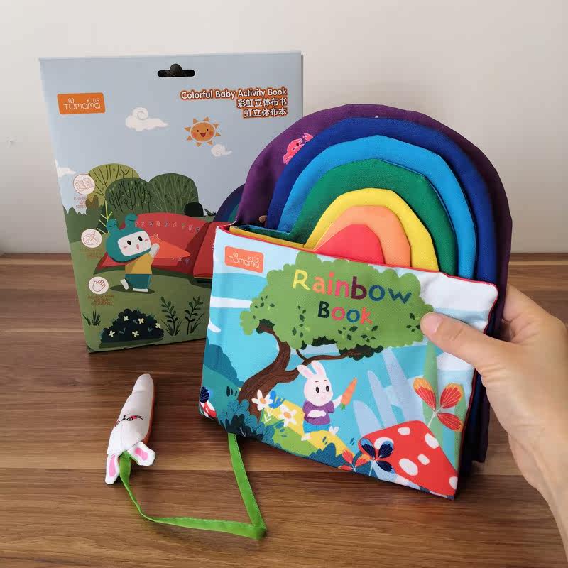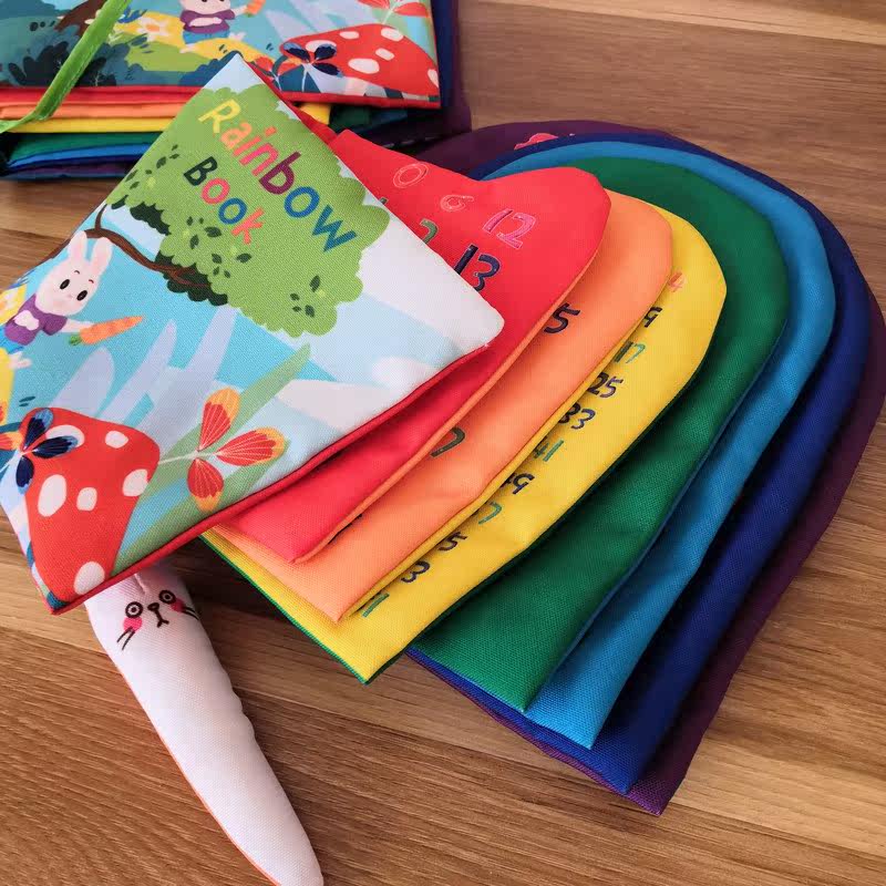Rainbow three-dimensional early education baby English math digital mother learning multi-functional puzzle cloth book can not be torn and can be bitten