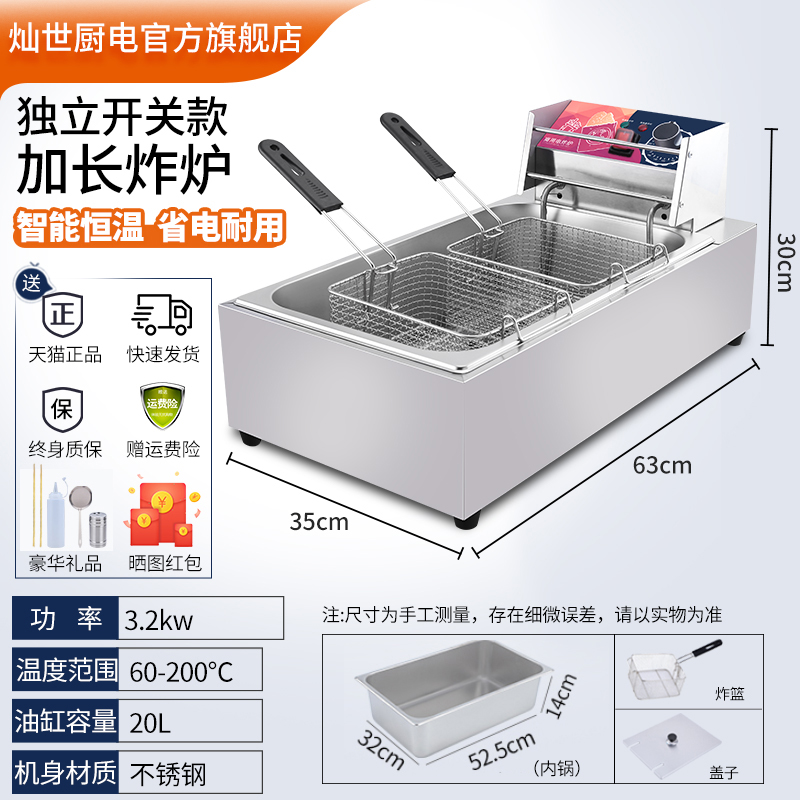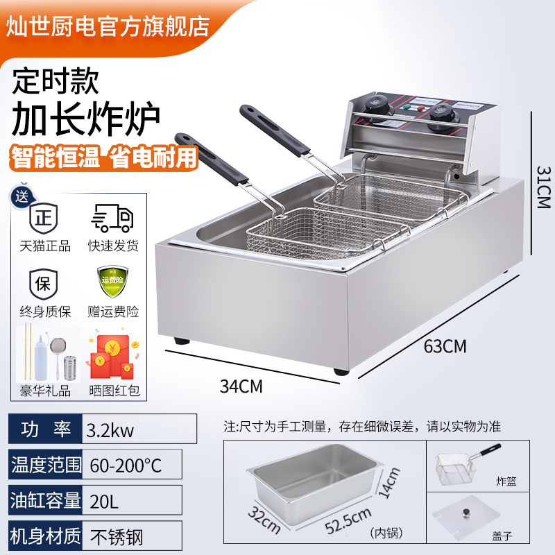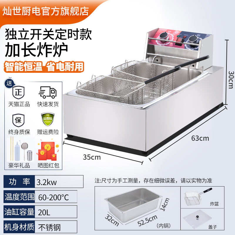 Large-cylinder double-sieve timed frying oven (with independent switch)