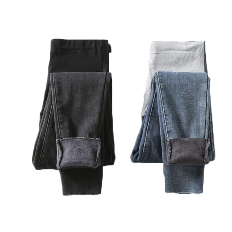 Pregnant Woman Jeans Spring Fall small foot Pregnancy Early Three Months Gestation Early Pants Children Autumn Winter Plus Suede Thickened