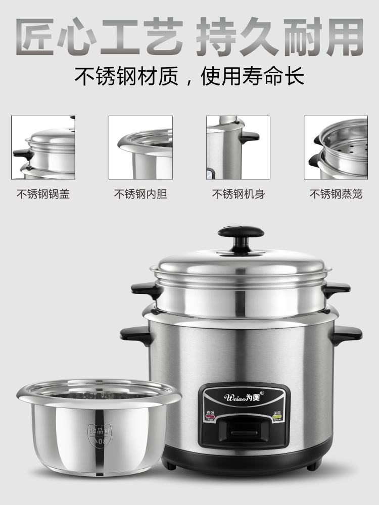 Old-fashioned 304 stainless steel rice cooker household 1-2 people 3-4 liters 5L6 liters ordinary multi-functional cooking small rice cooker
