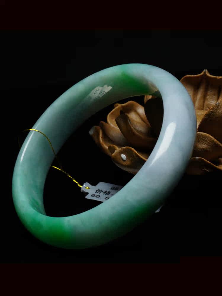Natural Jadeite Bracelet Round Bar Sungreen Ice Waxy Natural Jade Belt Certificate Female Models