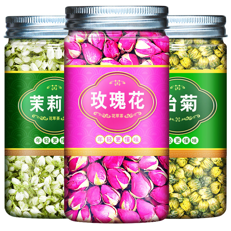 Rose chrysanthemum jasmine tea fetal chrysanthemum chrysanthemum rose jasmine tea combination canned three-flower tea soaked in water