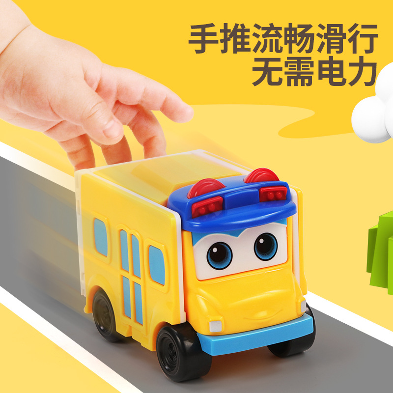 Children 100 Varyals School Bus Toy Song Engineering Car Deformed School Bus Sheriff's Full Range Reversal Car Hood Anecdote Car